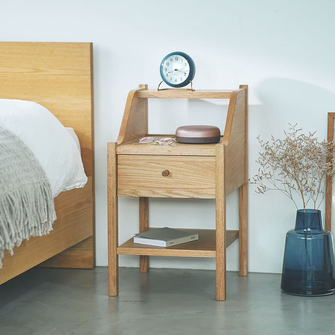 小物を収納するのに便利な引き出し付きのナイトテーブルです。
