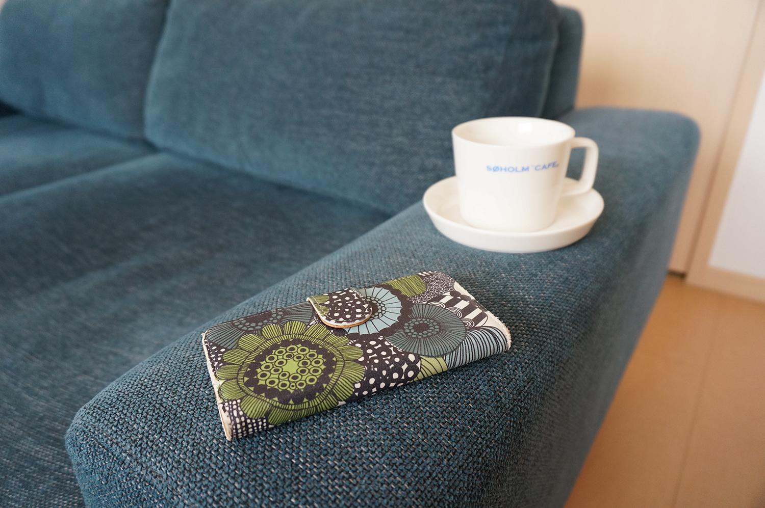 バージュソファの肘は、幅が20cmあり、とっても広々。