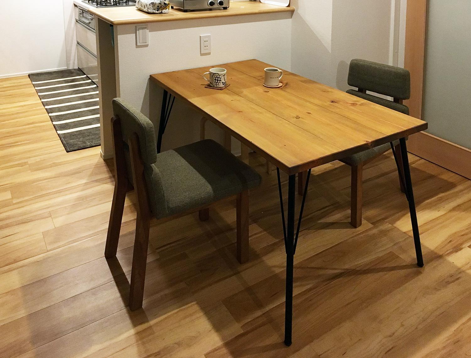 インダストリアルテイストのテーブルに、ハングダイニングチェアのBRフレームをコーディネート。 生地も彩度を抑えた色をセレクトされており、落ち着いたカフェのような雰囲気ですね!