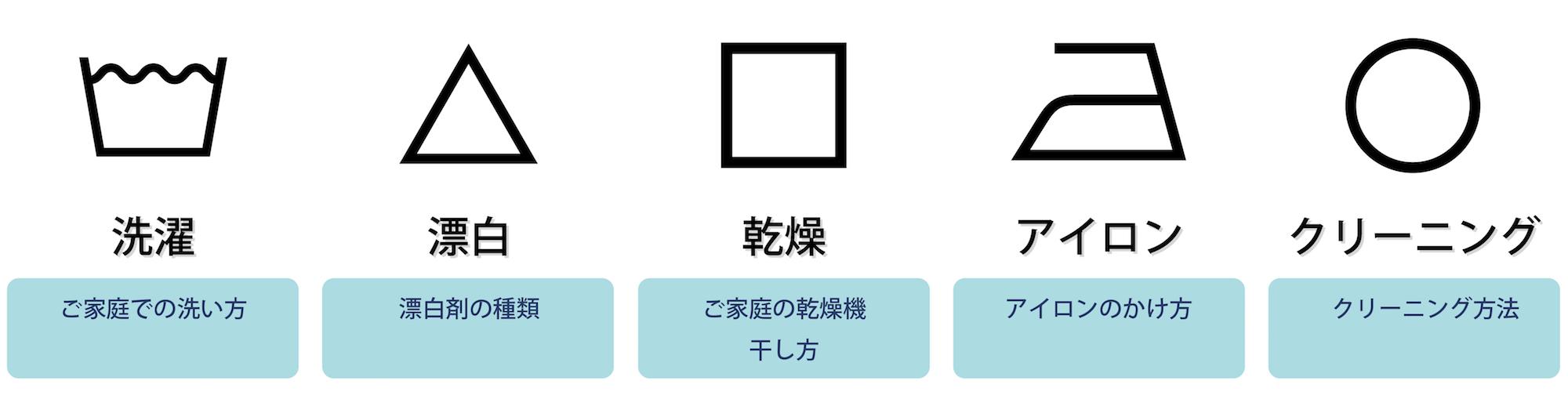 洗濯とアイロンは分かりやすいですが、漂白(△) 乾燥(□) クリーニング(○)は、シンプルすぎて覚えにくかもしれませんが、漂白は三角フラスコから三角形。