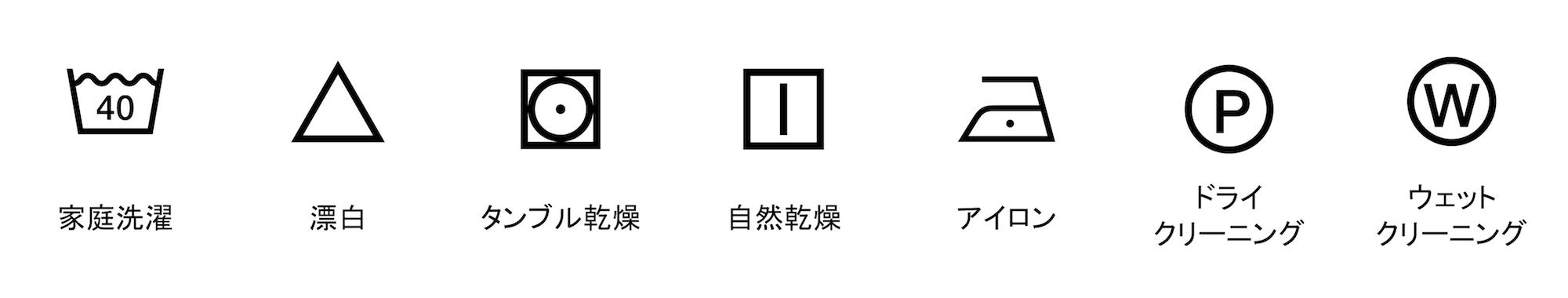 今まで日本のみで使われていた洗濯表示マークを海外と統一。馴れ親しんだマークなので、最初は戸惑う事もあると思いますので、抜粋してご案内させていただきます。