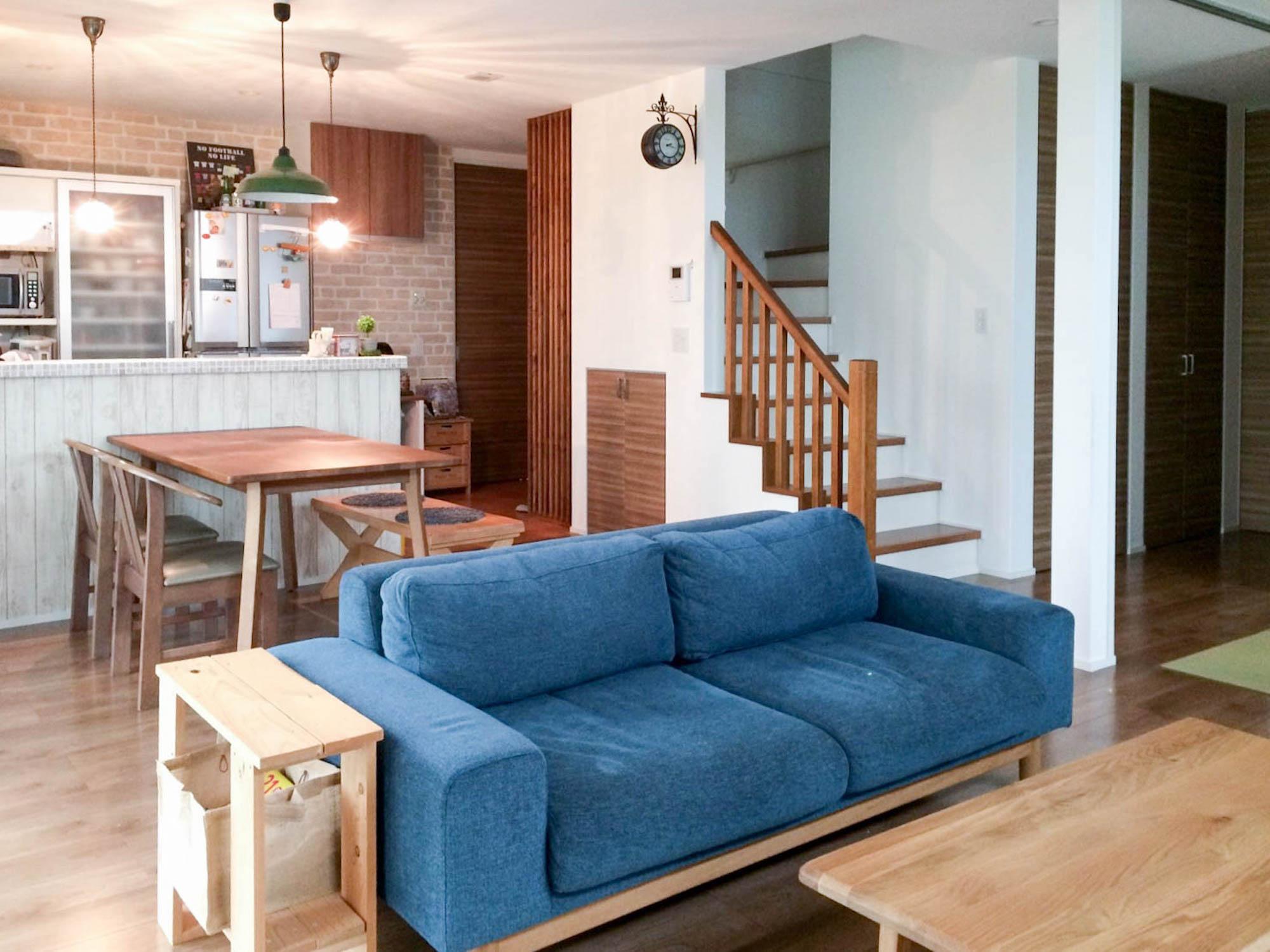 ナチュラルなお部屋の雰囲気に落ち着いたトーンのブルーがとっても馴染んでいます!