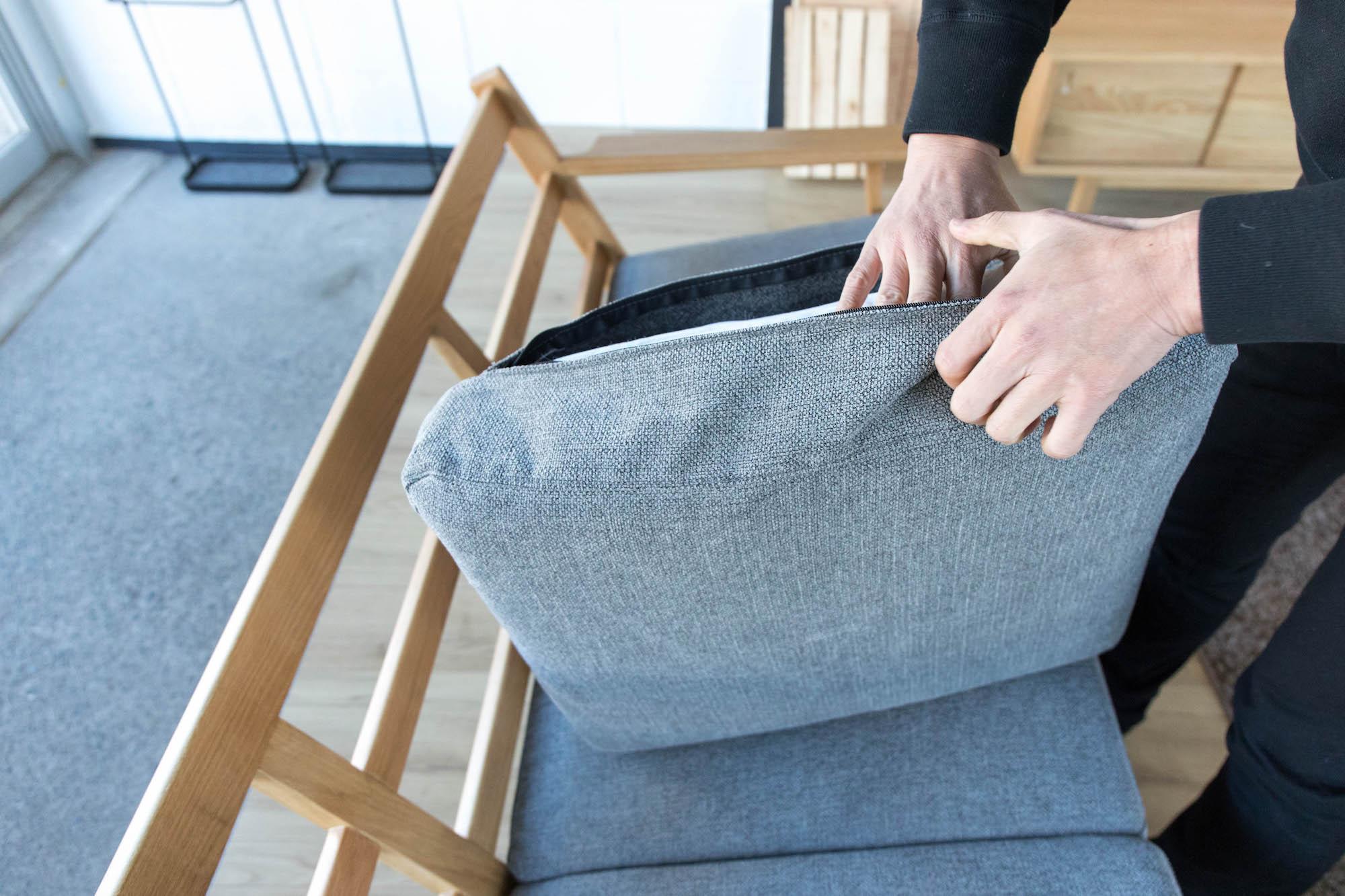 SIEVEのソファの多くはカバーリングタイプとなり、カバーの脱着が可能です。
