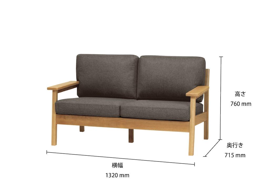 例えば、ブラケットソファ(幅146cm)とマージソファ(幅132 cm)は同じ2人掛けですが、横幅のサイズが 14cm も違います。