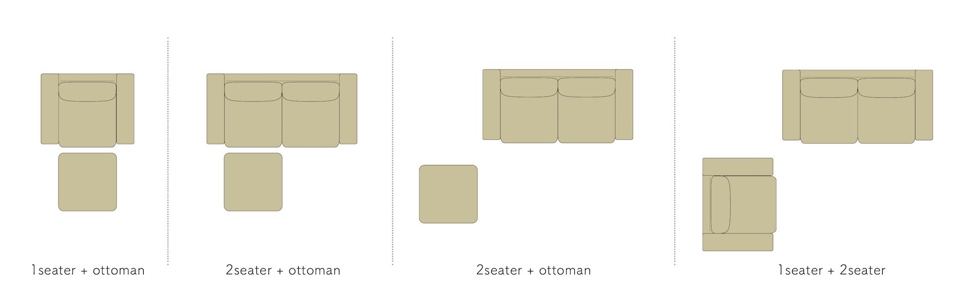 ソファの形状としては、1人掛け、2人掛け、3人掛け・・・とシートの横幅を基準にサイズが大きくなる事が一般的です。