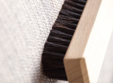市販の衣類用ブラシを使い、生地に入り込んだ細かいゴミをはらいます。ソファの生地をよく見ると縦と横に「織り目」が見えますので、その目に沿って織り目の間に入り込んだ小さなゴミを軽くかき出すよう同じ方向にブラッシングすると効果的です。 静電気除去機能のあるブラシを使うとホコリがつきにくくなります!