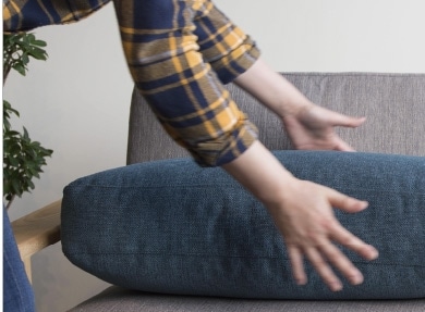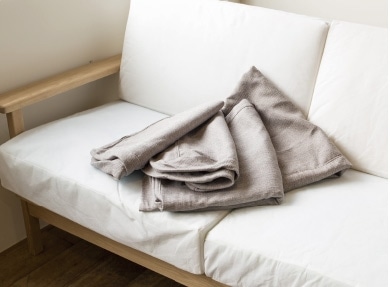 ソファのクッションにカバーをするコツをご紹介いたします。