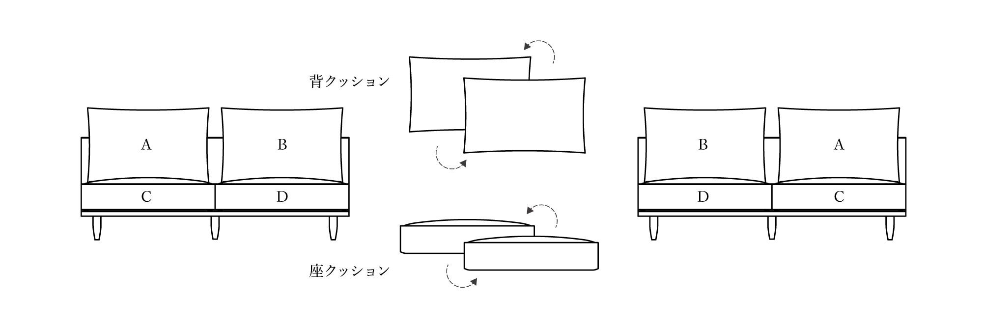 クッションをローテーションすることで、負荷を分散して良い座り心地が長持ちします。