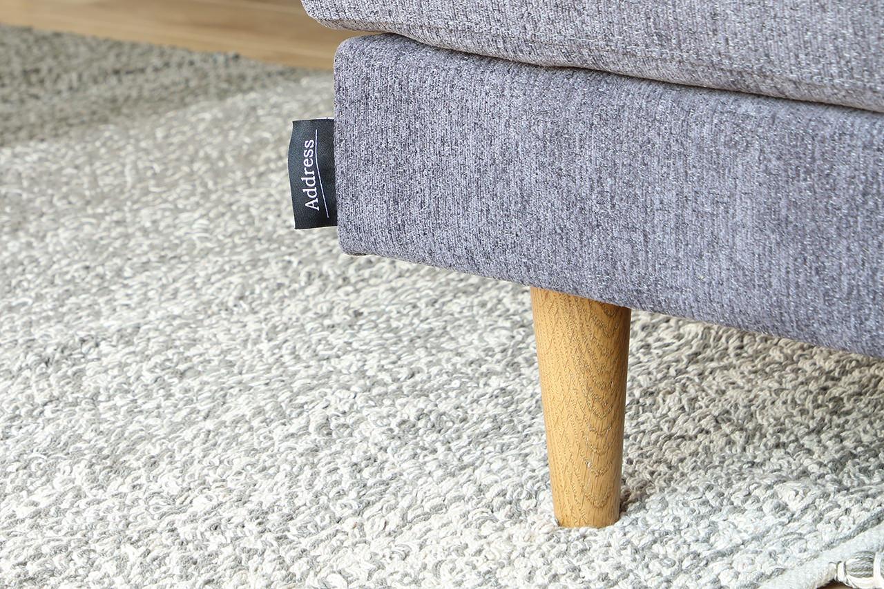 ティナソファの生地は、ほんのり起毛していて触り心地もよく、3色ほど糸がミックスされていて表情豊かな質感です。