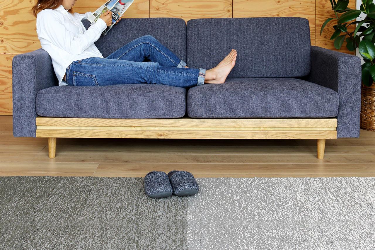ソファの隙間やクッション下は、お菓子の食べこぼしや、お子様のズボンの裾の砂が入り込むなど、実はゴミがたまりやすい場所です。ティナソファの座クッションはマジックテープの固定式で、女性1人でも無理なく外すことができます。