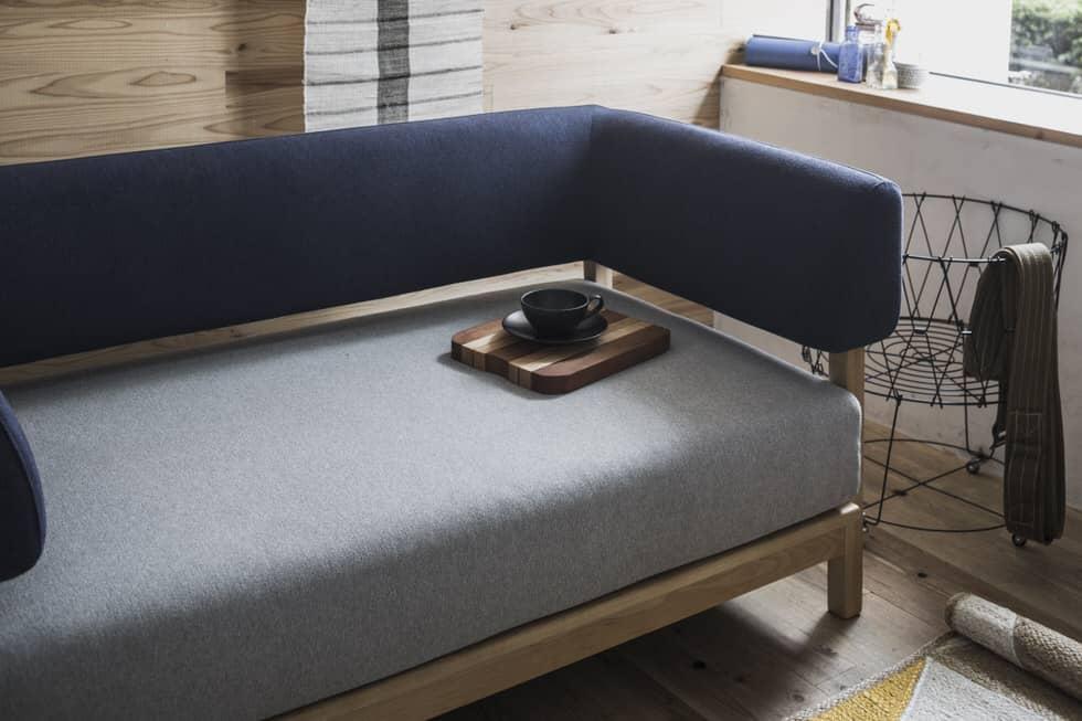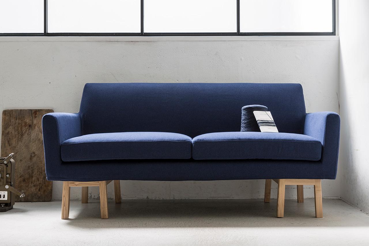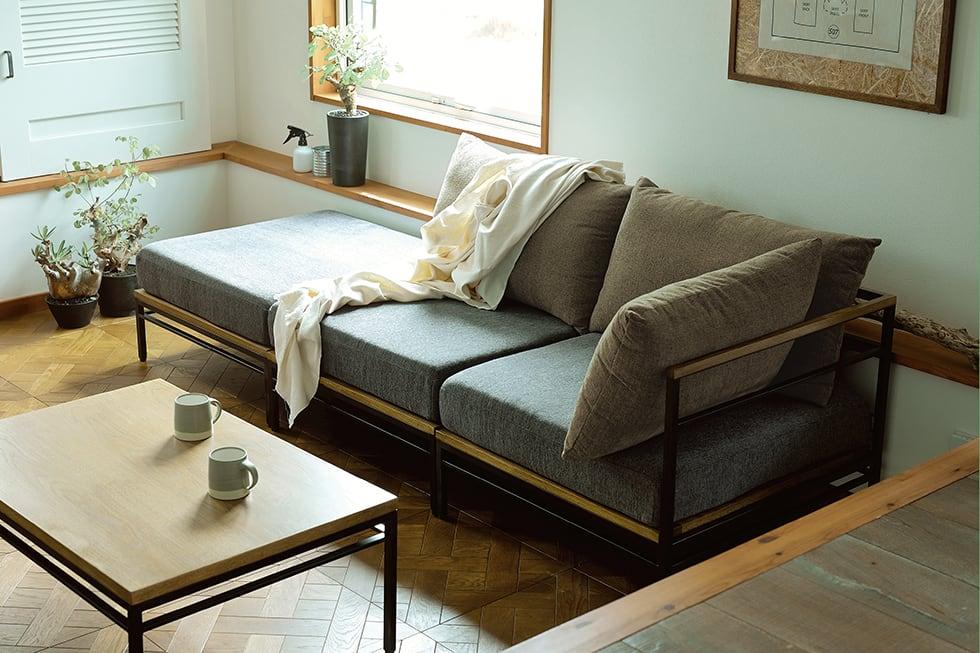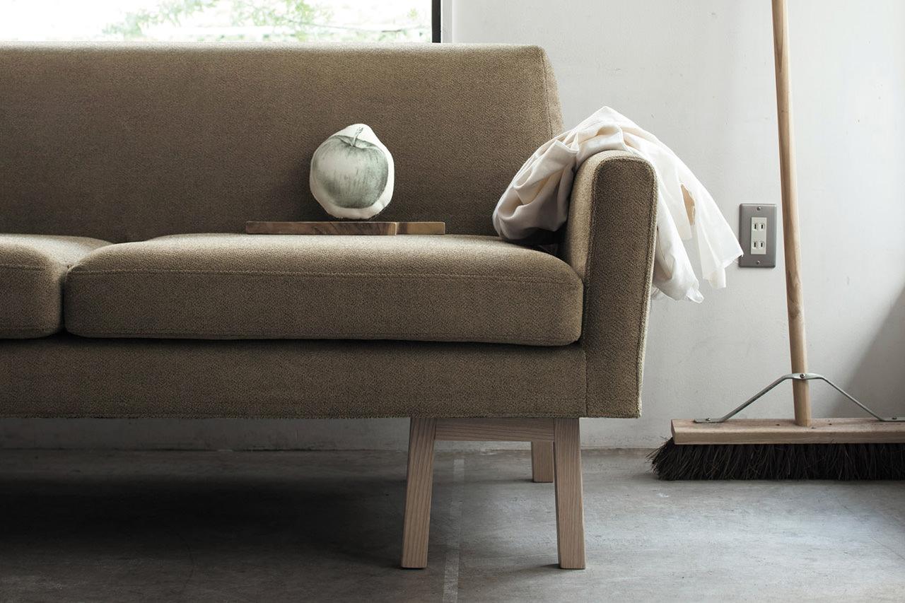 シンプルで凛としたデザインと、天然木のフレーム。そして少し粗め生地を組み合わせた、どことなく懐かしい雰囲気のソファです。