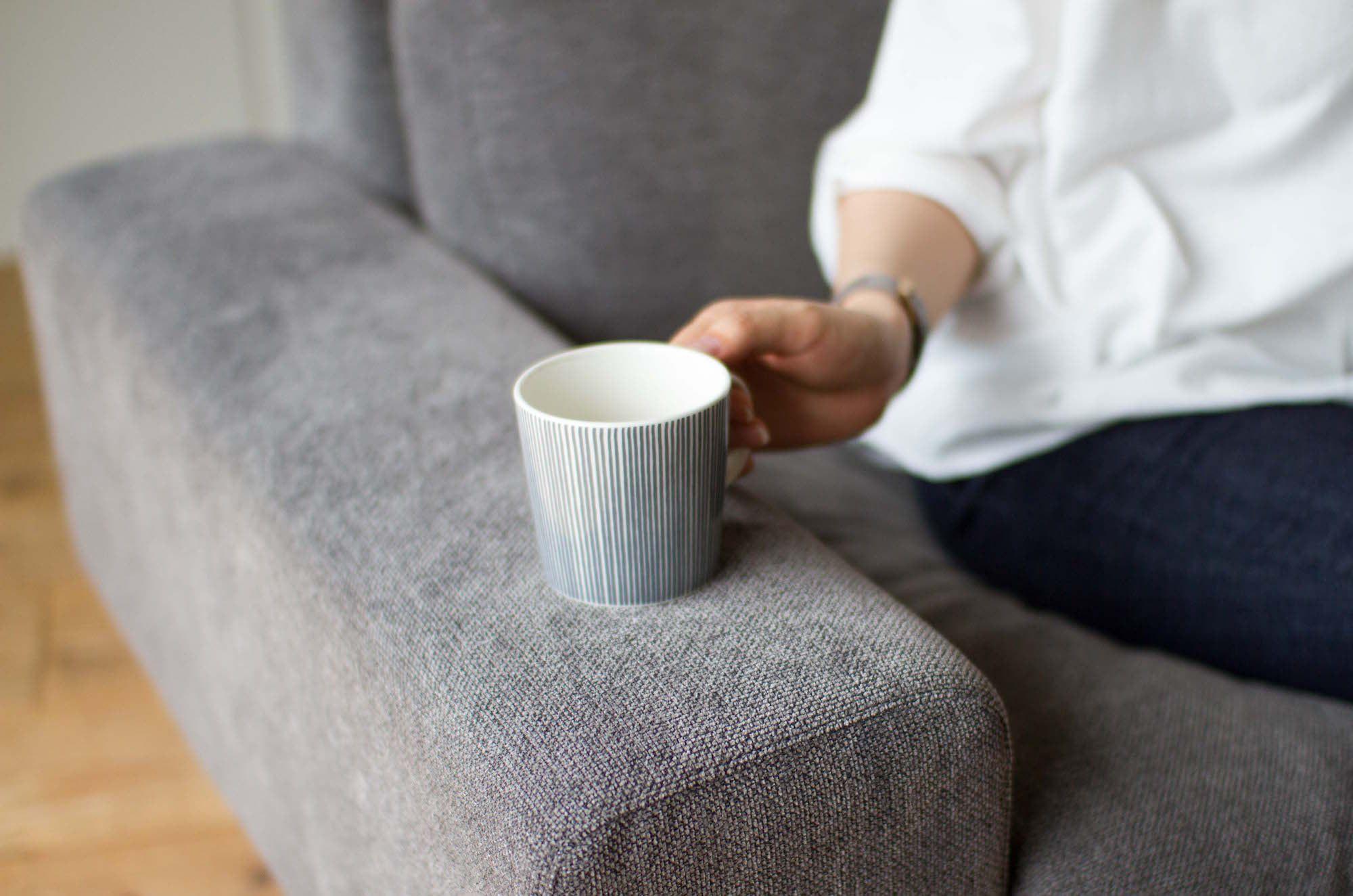 アームの印象が際立つスナグユニットソファのアーム幅は、29cmとSIEVEオンラインの中で最大サイズ。 表面に薄くウレタンが入っており、物をのせてもフワフワと変形しない仕様で、サイドテーブルのように便利に使えます。