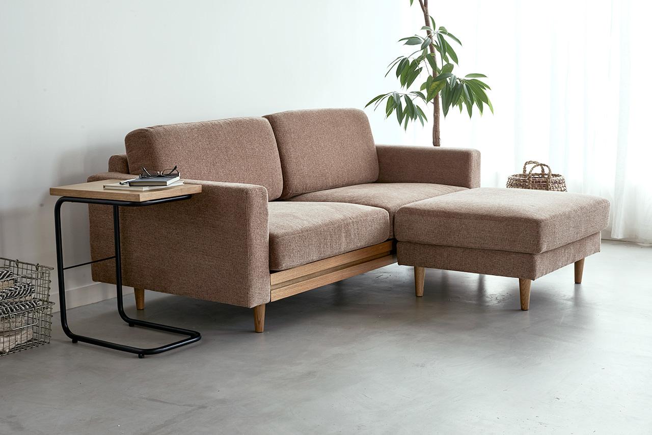 両サイドのオーク無垢材が特徴的なコニーソファ。
