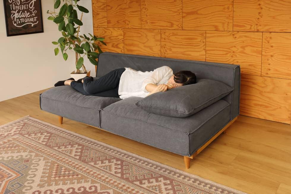 ソファに横になった時に、身長によっては肘掛けに脚が引っ掛かってしまいますが、アームレスタイプの場合は、気にせず自然に脚を伸ばして寝転ぶ事ができます。