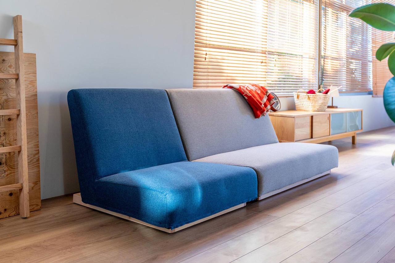 形状からの視覚的な部分と雰囲気からの感覚的な部分の両面から浮遊感を持たせたフロートソファ。