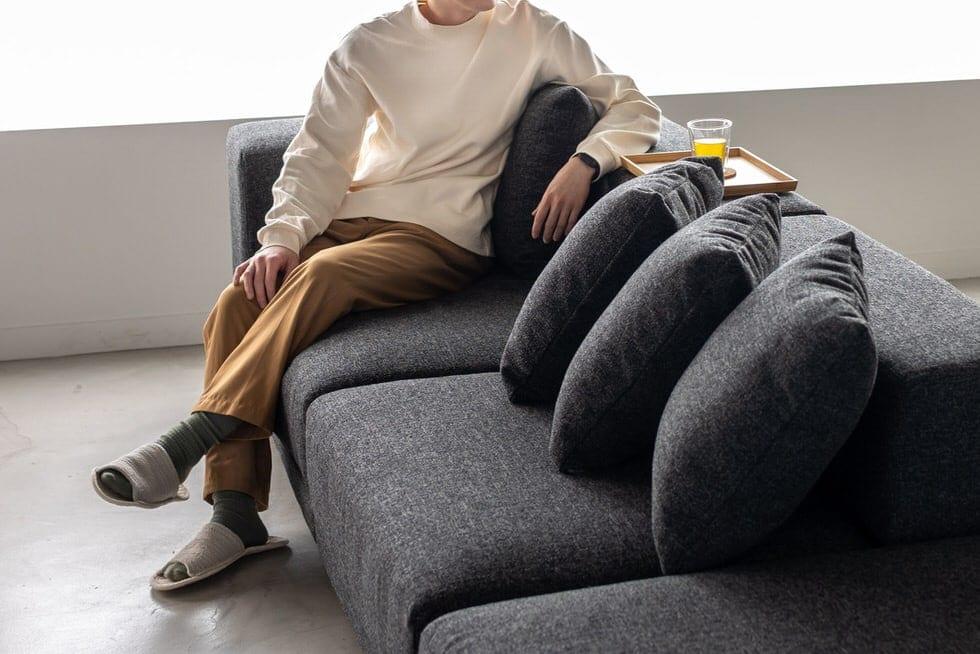 ソファのアームに肘をかけて座ると、アームが肘の重さを支えてくれるため、ソファーでリラックスした体勢でくつろぐことができます。