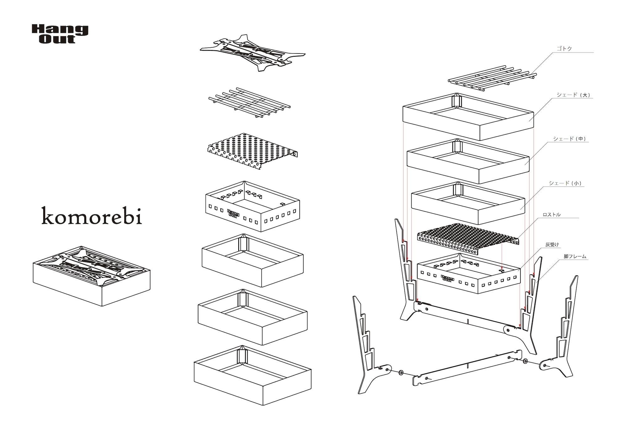 類似の焚火台は、世の中にない HangOut オリジナルデザインの焚火台 『komorebi』は、2022年1月発売予定です。発売日が確定しましたら、ブランドサイト、ECサイト、インスタグラムでお知らせいいたしますのでお楽しみに。