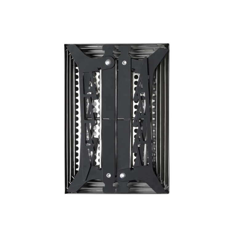 単純な板の組み合わせとは差別化をし、燃焼効率と間接照明として機能するデザインを目指し、脚パーツはデザインと軽量化の穴をあけ、焚火の灯りが脚に映らないように黒色をセレクトしています。