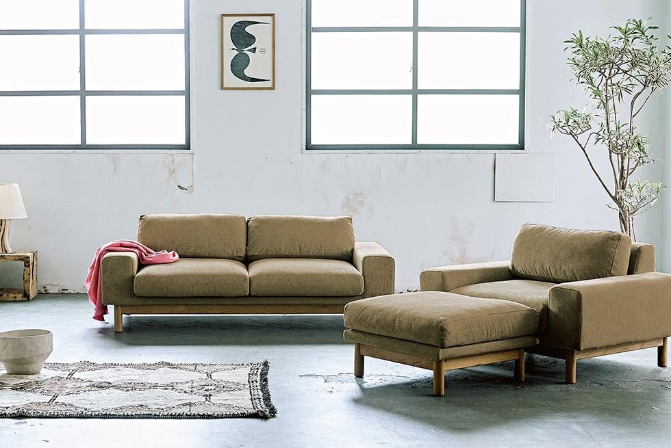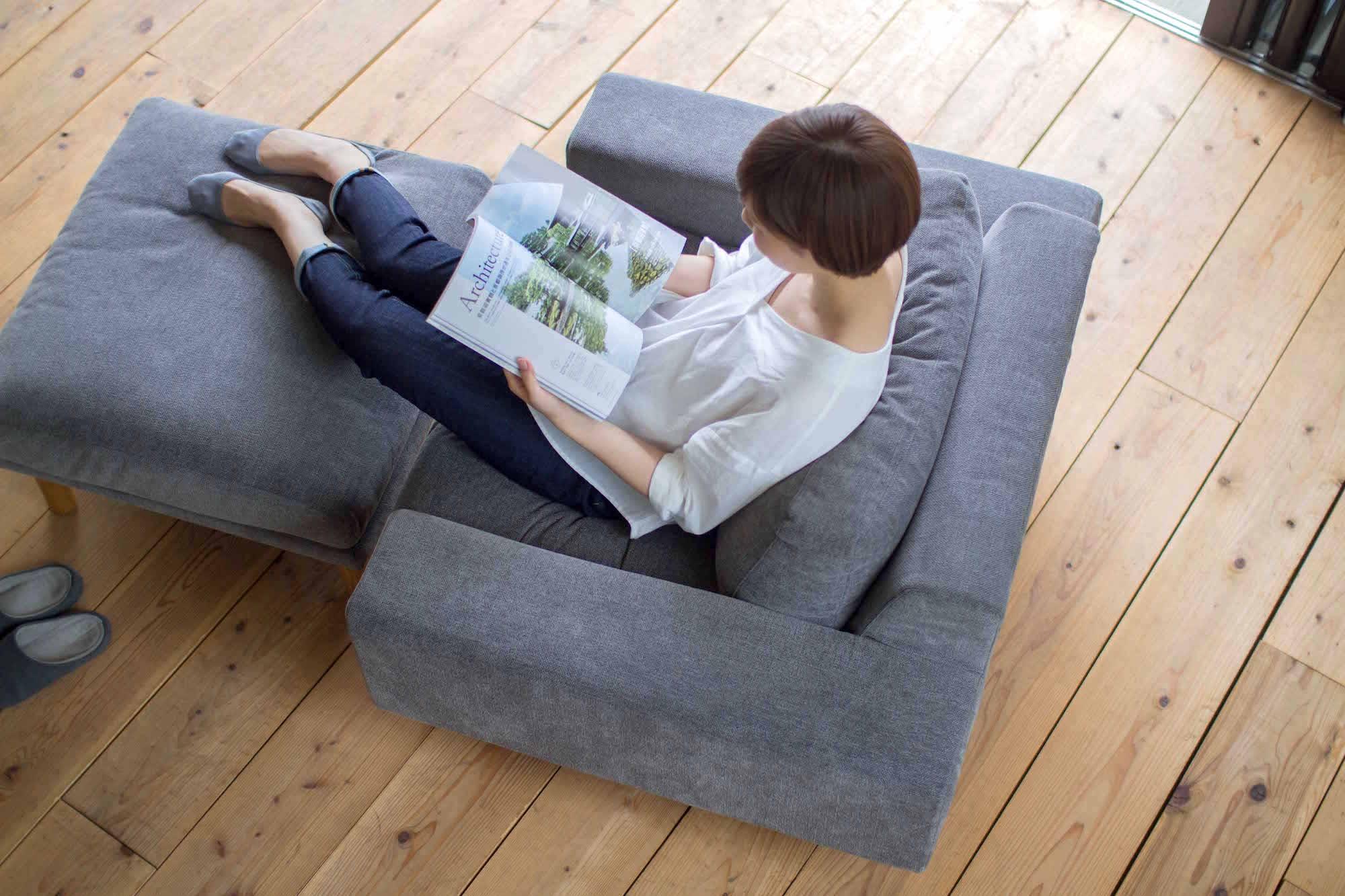 お部屋のスペース的に大きなソファが置けない方には1P +オットマンをお選びいただけば、自分だけの安らげる場所を簡単につくれます。