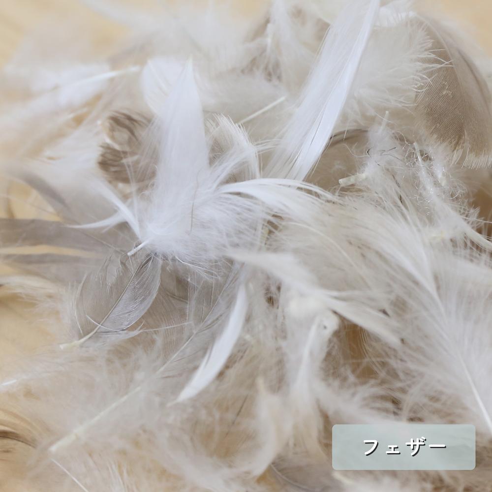 水鳥の羽(羽毛)。軽くてふんわりとした天然素材。SIEVEではシルバーグースという種類の水鳥の羽を使用。 ふんわりと沈み込むような優しい弾力が特徴。つぶれても形を整えながら軽く叩いて空気を入れてあげることで、元の形に戻る復元性の高い素材です。また、湿気を逃がす力にも優れています。