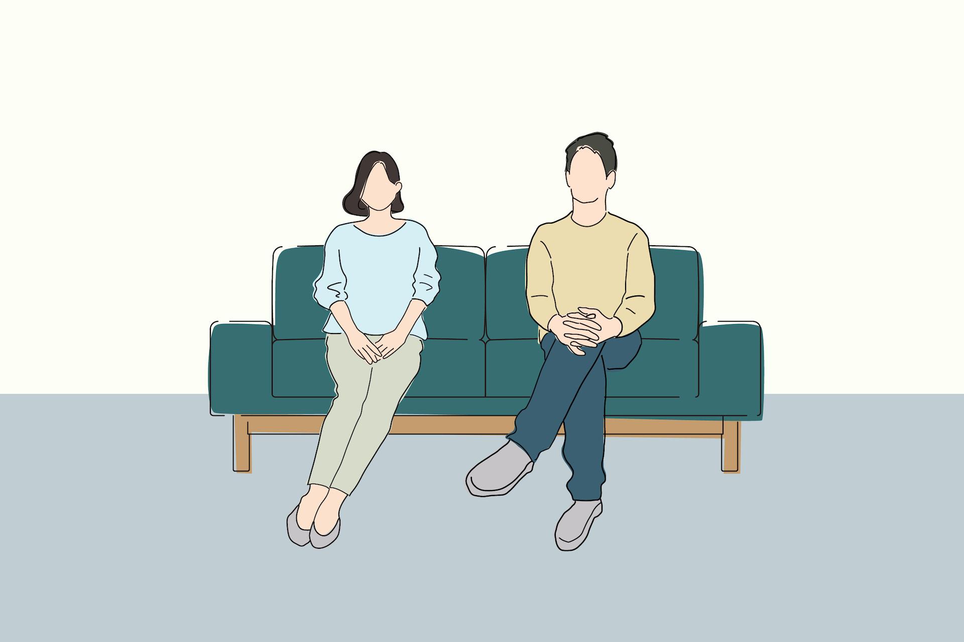 ゆったり座れる2人掛けソファ(2~2.5人掛けソファ)イラストの男性は175cm 女性は160cmほどのイメージです。