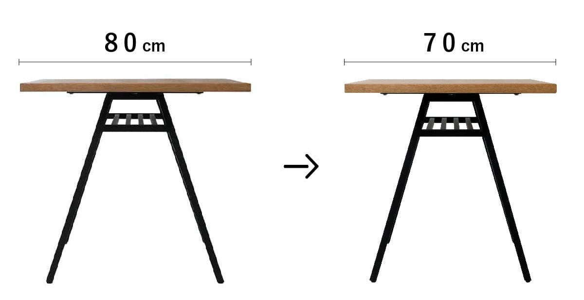 テーブルの奥行きを10cmコンパクトにすることで、部屋が広く見えたり、通路などの動線を広く使うことができます。