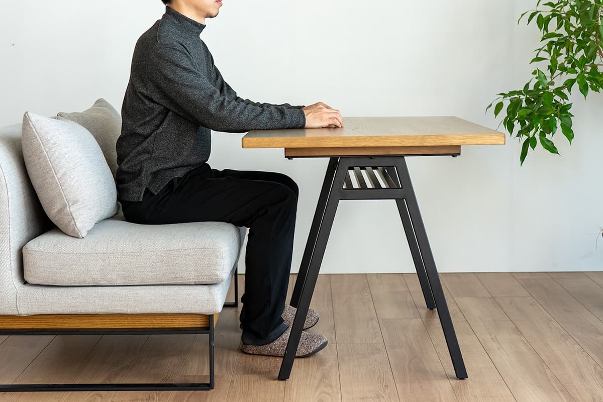 高さが低くなることで、座ったままでもテーブルが自然と手元に近くなり、リラックス感が向上。読書やくつろぎタイムに