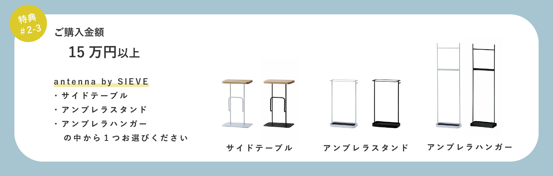 ・15万円以上 antennaシリーズからお好きな商品を1つ