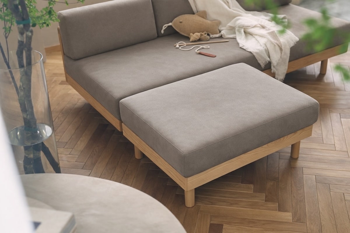 つめの引っかきに強い生地を使用した、ALLLL(オール)のモーニングデイベッドソファに、オットマンが新たに加わりました。