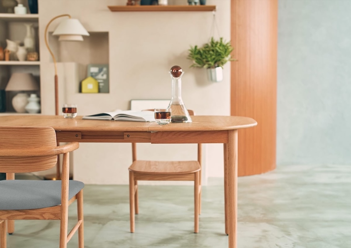 「大きなテーブルは普段持て余してしまうけれど、狭すぎるのも困る」という住まいの現実に、ちょうどよくフィットするバランスです。