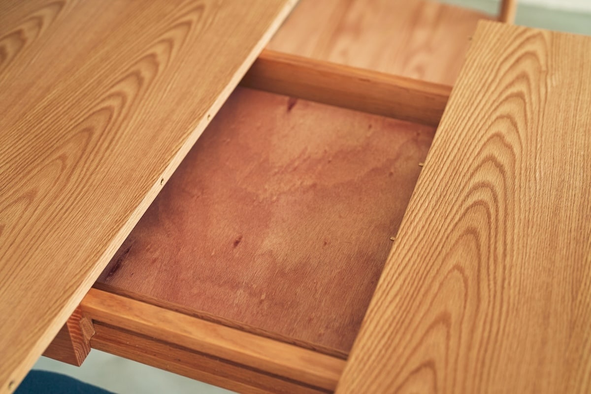 家族が集まる日や来客時など、もう少し広さが欲しい場面もあります。そんなときは天板を伸長して160cmへ。