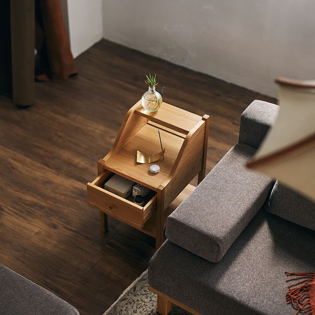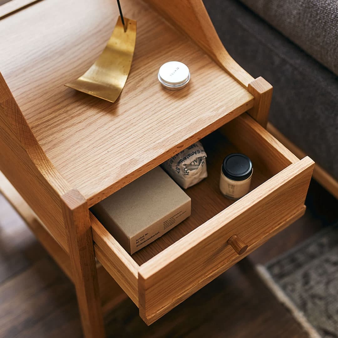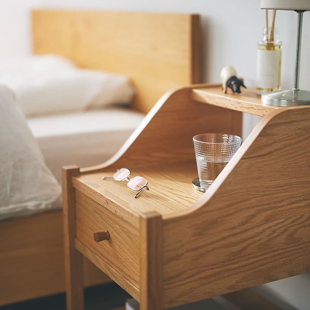 小物を収納するのに便利な引き出し付きのナイトテーブルです。
