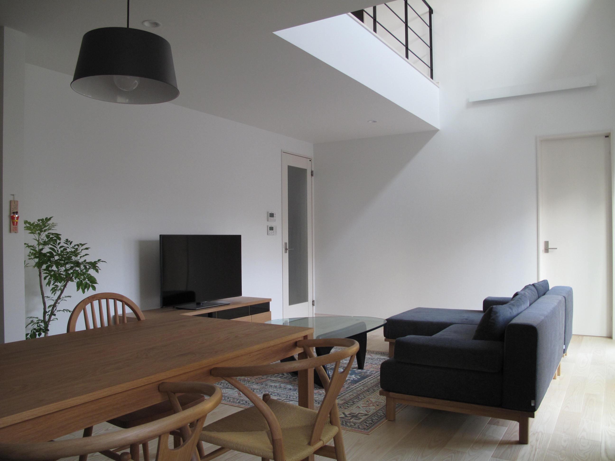 リビングの上は吹き抜けになっており、明るい光が差し込みます。
