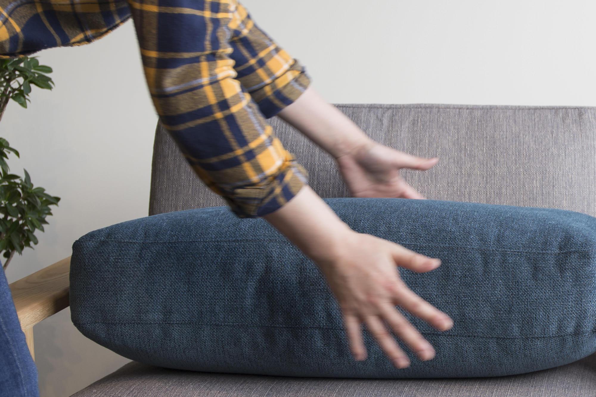 フェザークッションは、身体をふわっと包み込むような座り心地が特徴で、SIEVEのソファではバージュソファ、レクトユニットソファなどで使用しております。フェザーは柔らかな天然素材なので、座った場所のクッションが型崩れしやすいという特性もあります。しかし、少し手を加えるだけで元のような形に戻すことができるのも特徴です。