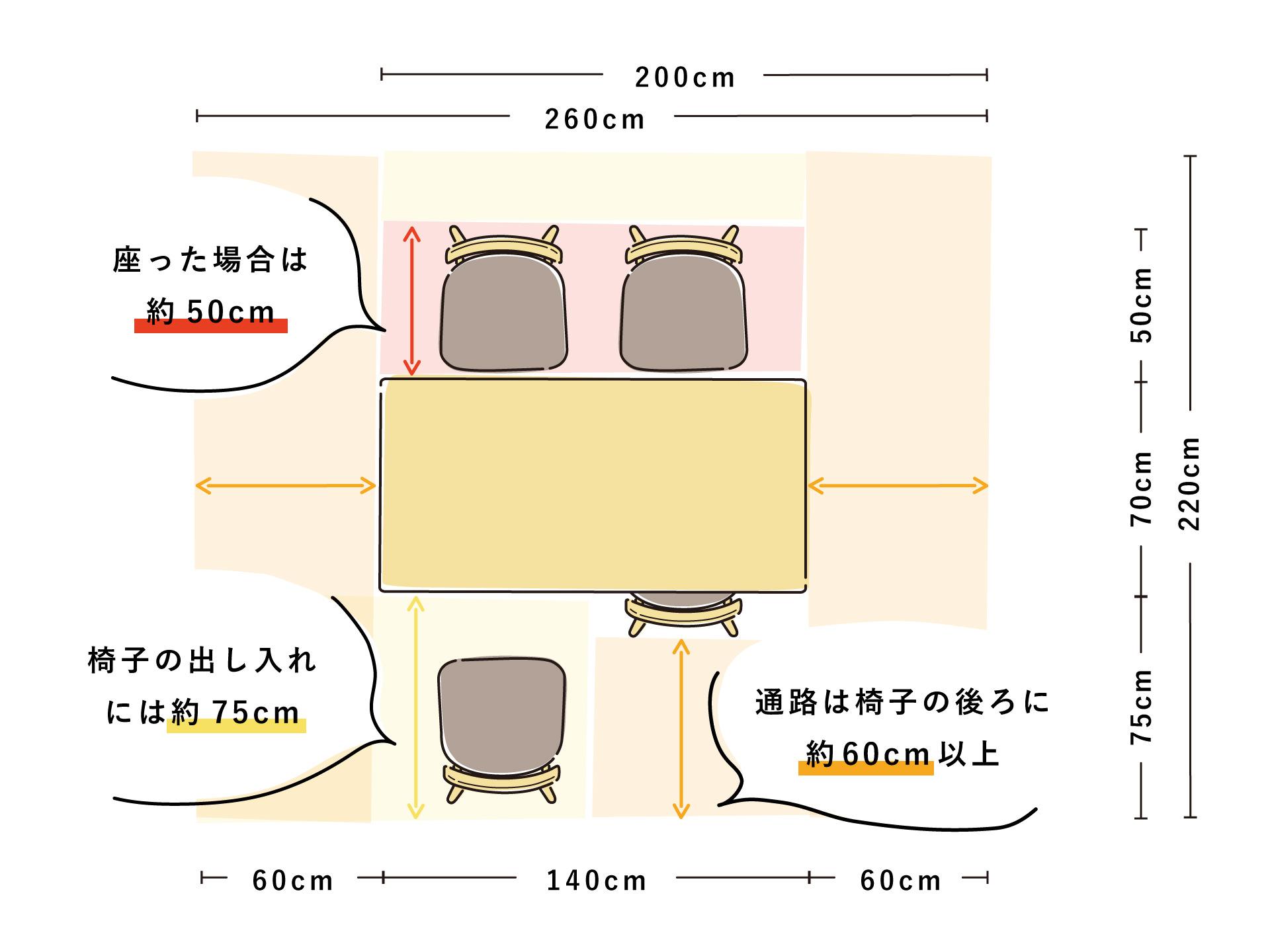 | 椅子に座る時に必要なスペース | 約75cm - |
