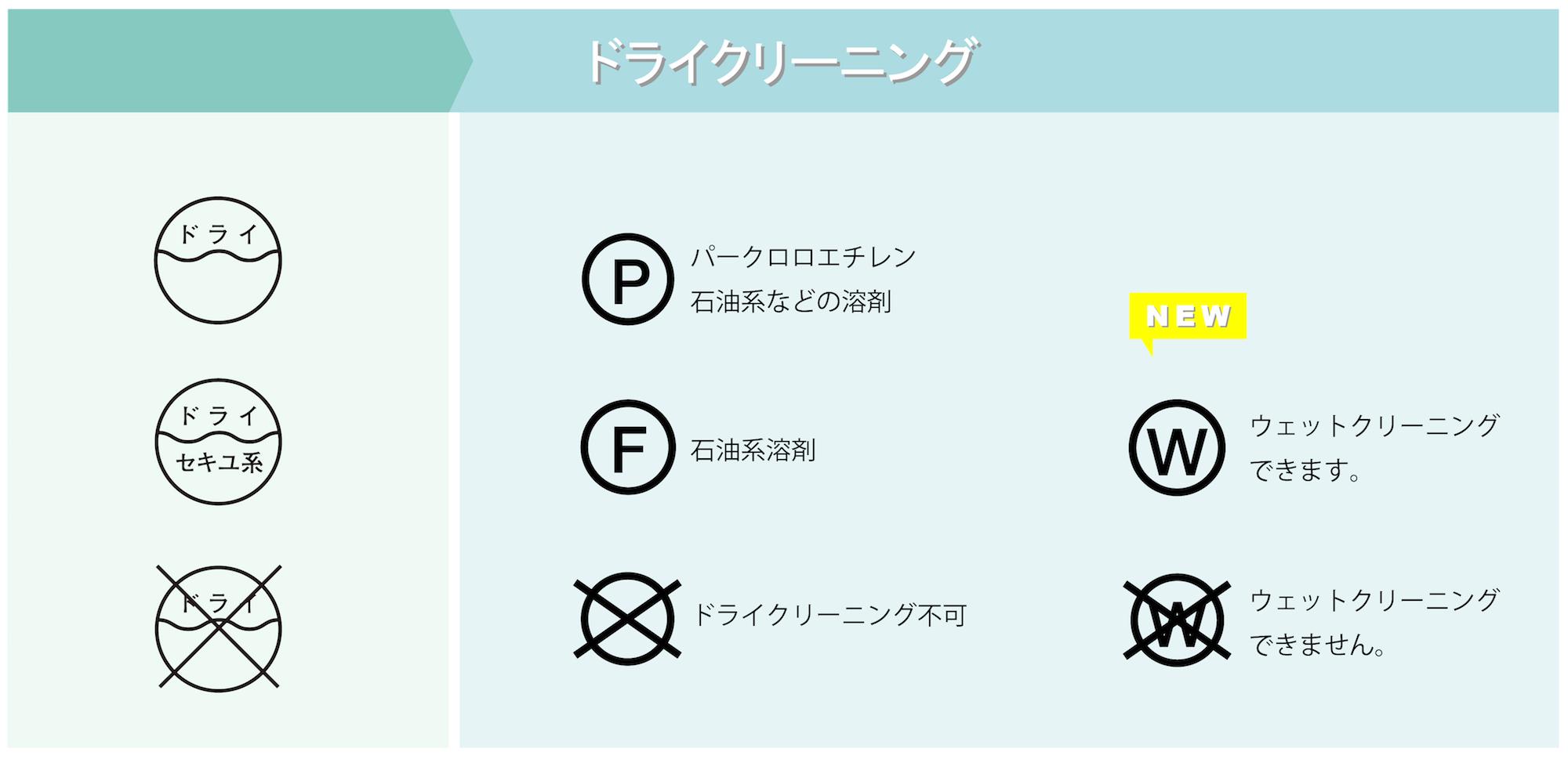 ドライクリーニングに、新たに『ウェットクリーニング』のマークが追加されました。