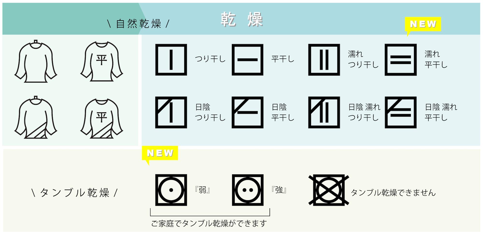 今まで日本のみで使われていた洗濯表示マークを海外と統一。馴れ親しんだマークなので、最初は戸惑う事もあると思いますので、抜粋してご案内させていただきます。