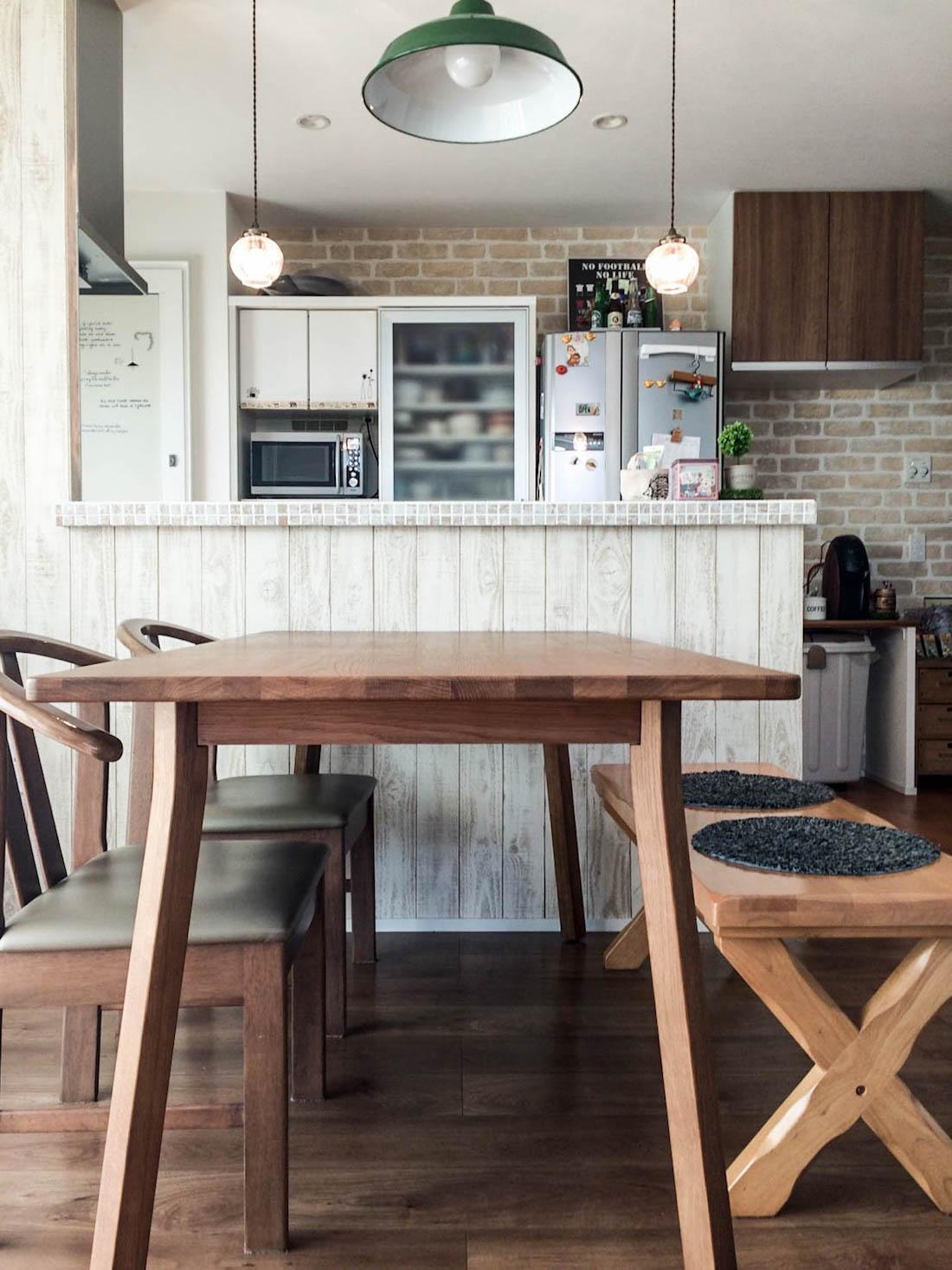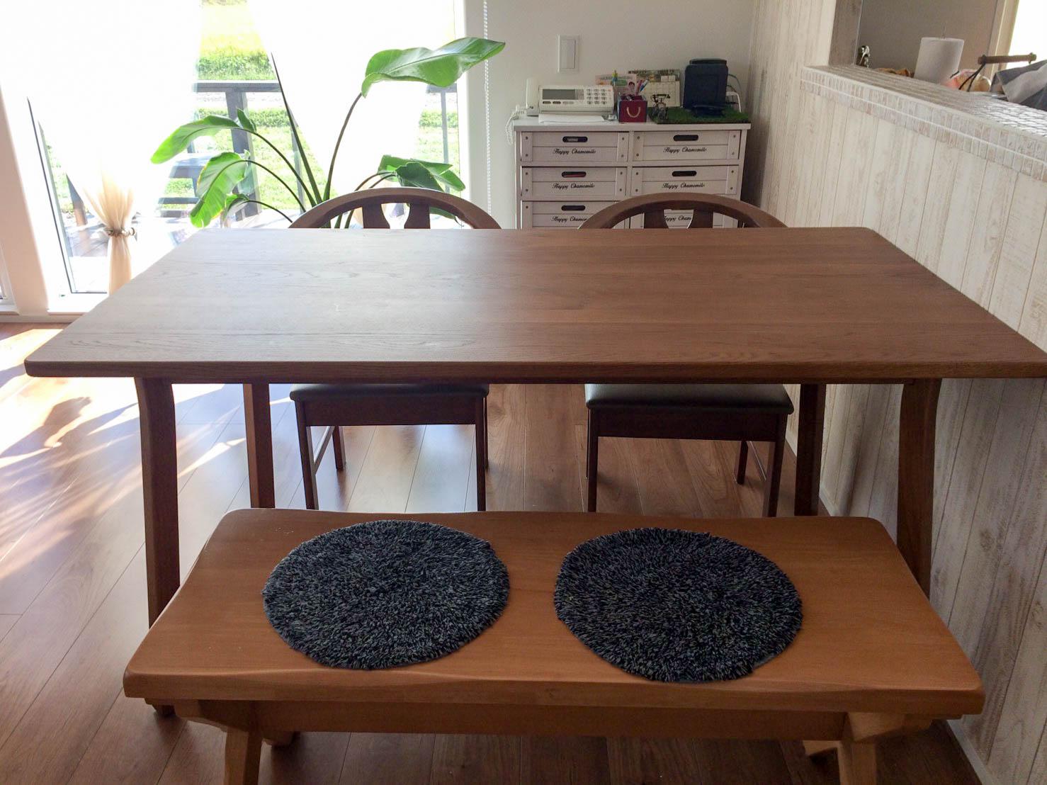 マージダイニングテーブルには、別々の椅子とベンチを組み合わせてご使用いただいています。