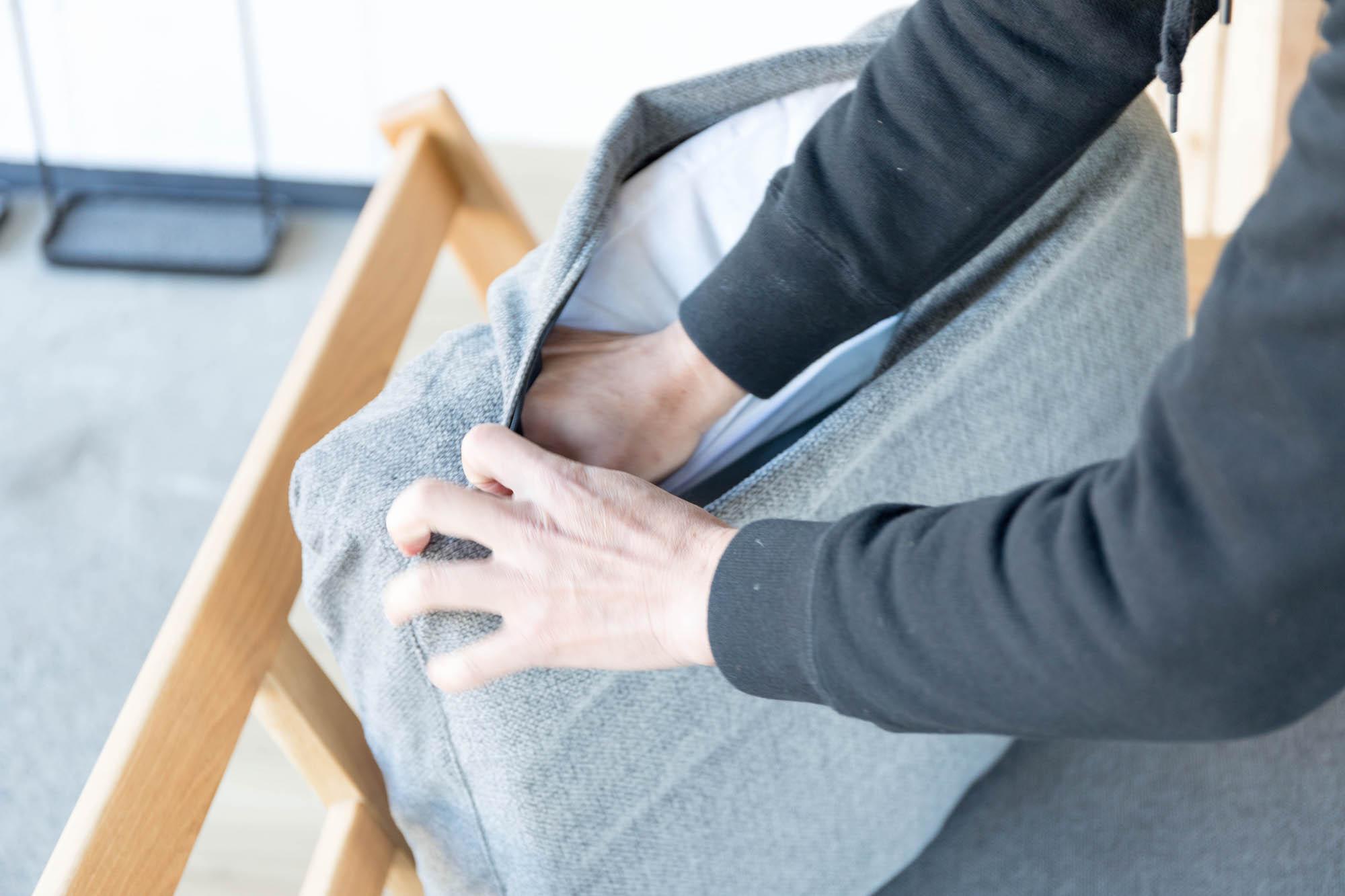 ファブリックに汚れやニオイが付着した場合、カバーをはがしてドライクリーニングでお手入れする事が可能です。