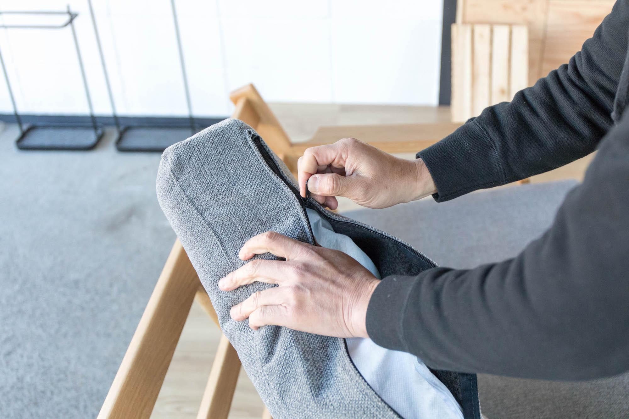 SIEVEのソファの多くはカバーリングタイプとなり、カバーの脱着が可能です。