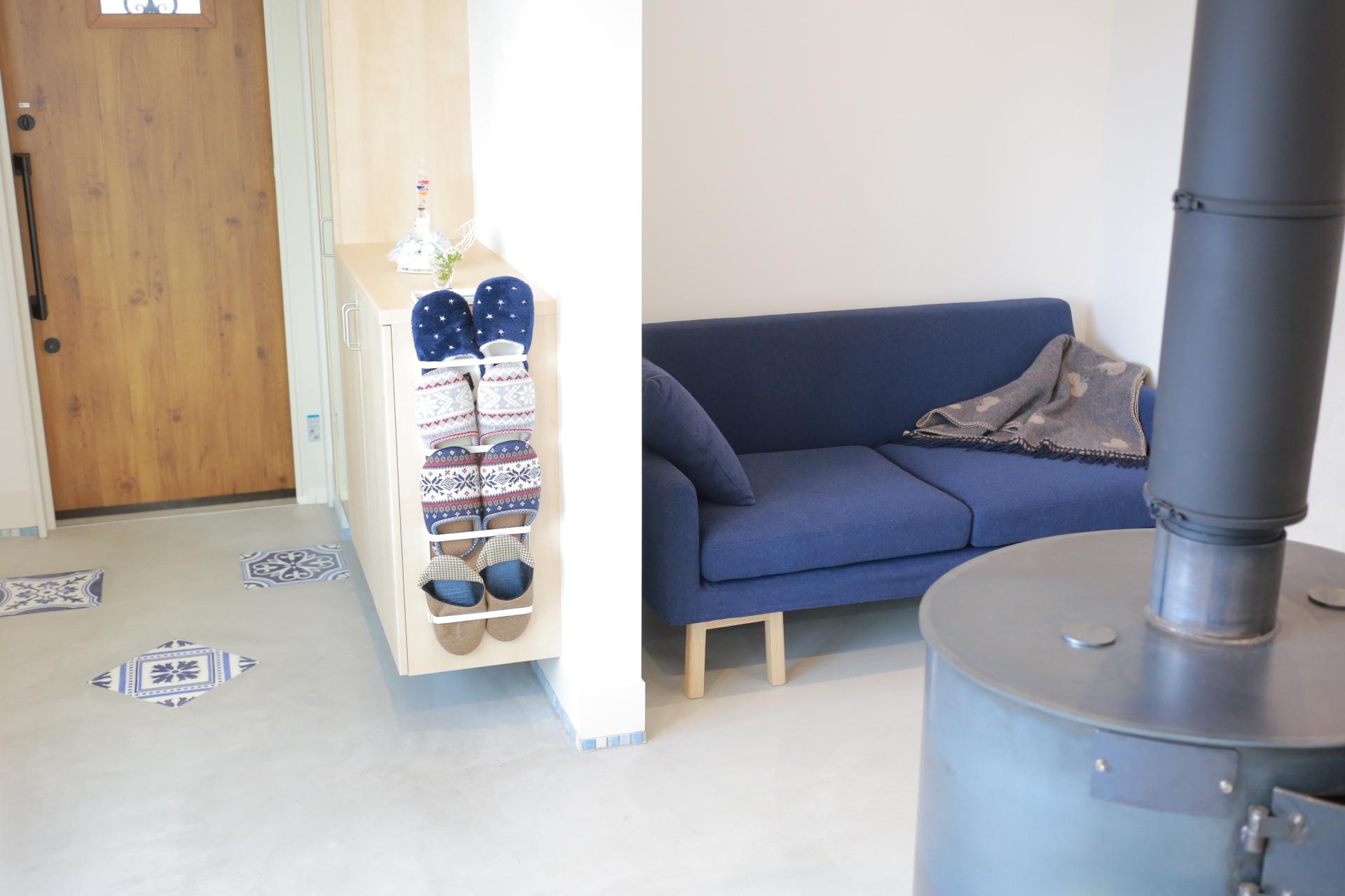 玄関を開ければ、広々とした土間が広がるK様邸。 その中央に配置された薪ストーブ前の特等席に、フロートソファをご採用頂きました!!