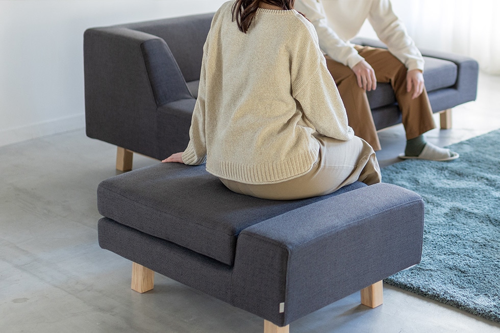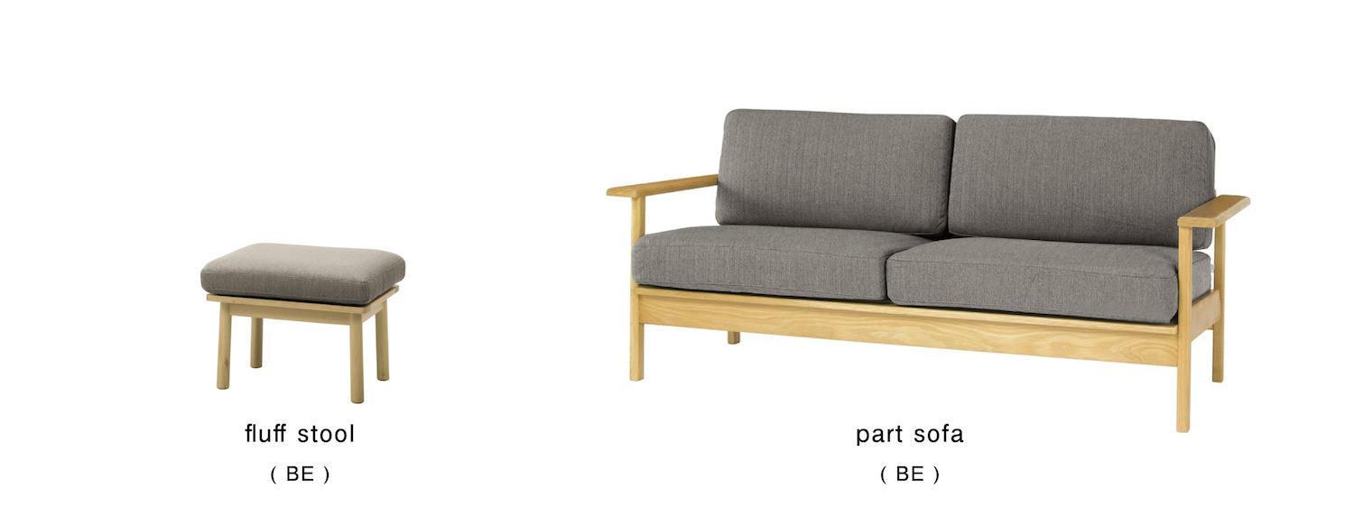例えば、パートソファと フラッフシリーズ の生地バリエーションは共通ですので、パートソファにフラッフスツールを組み合わせて購入される方もいらっしゃいます。