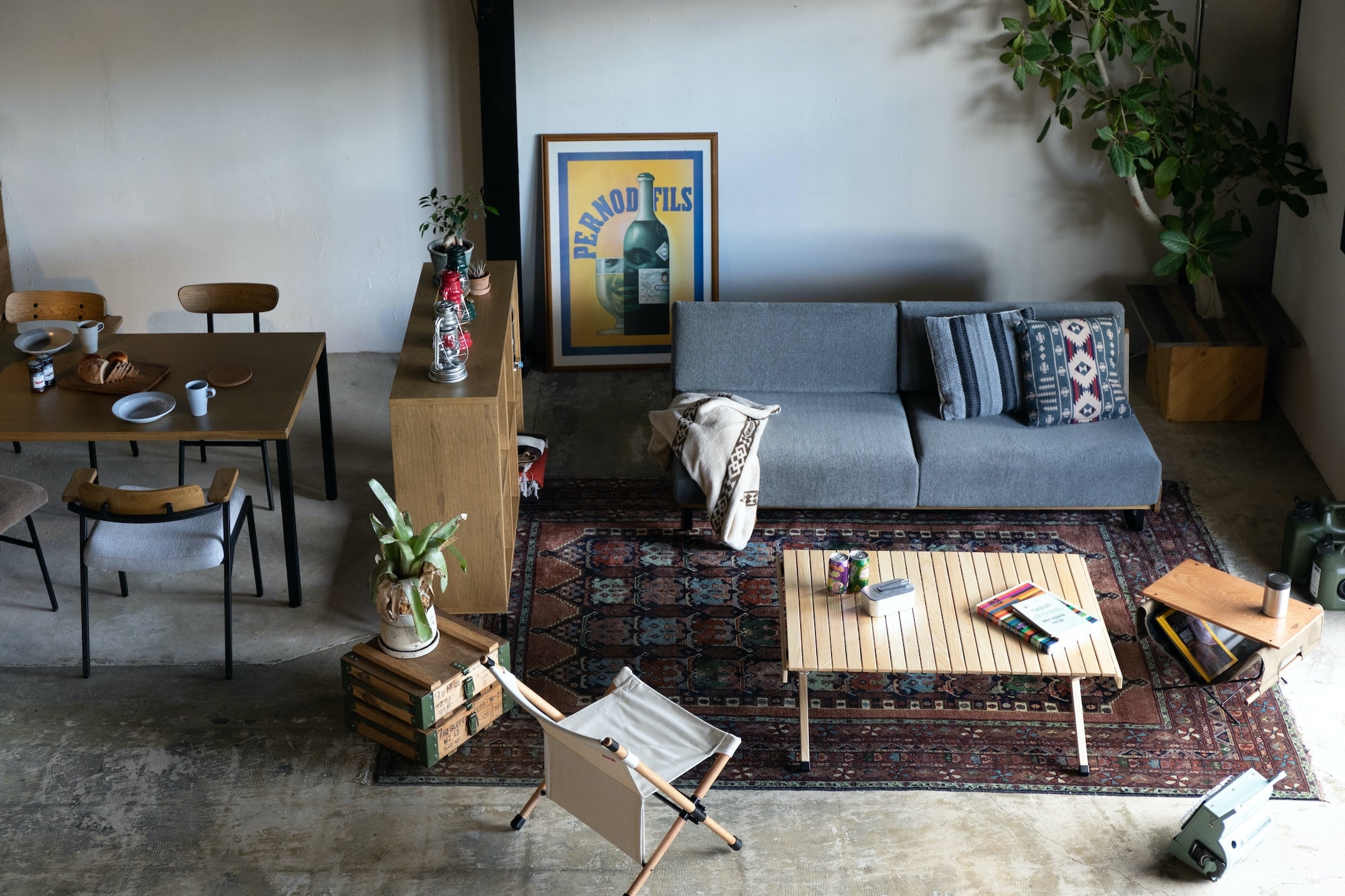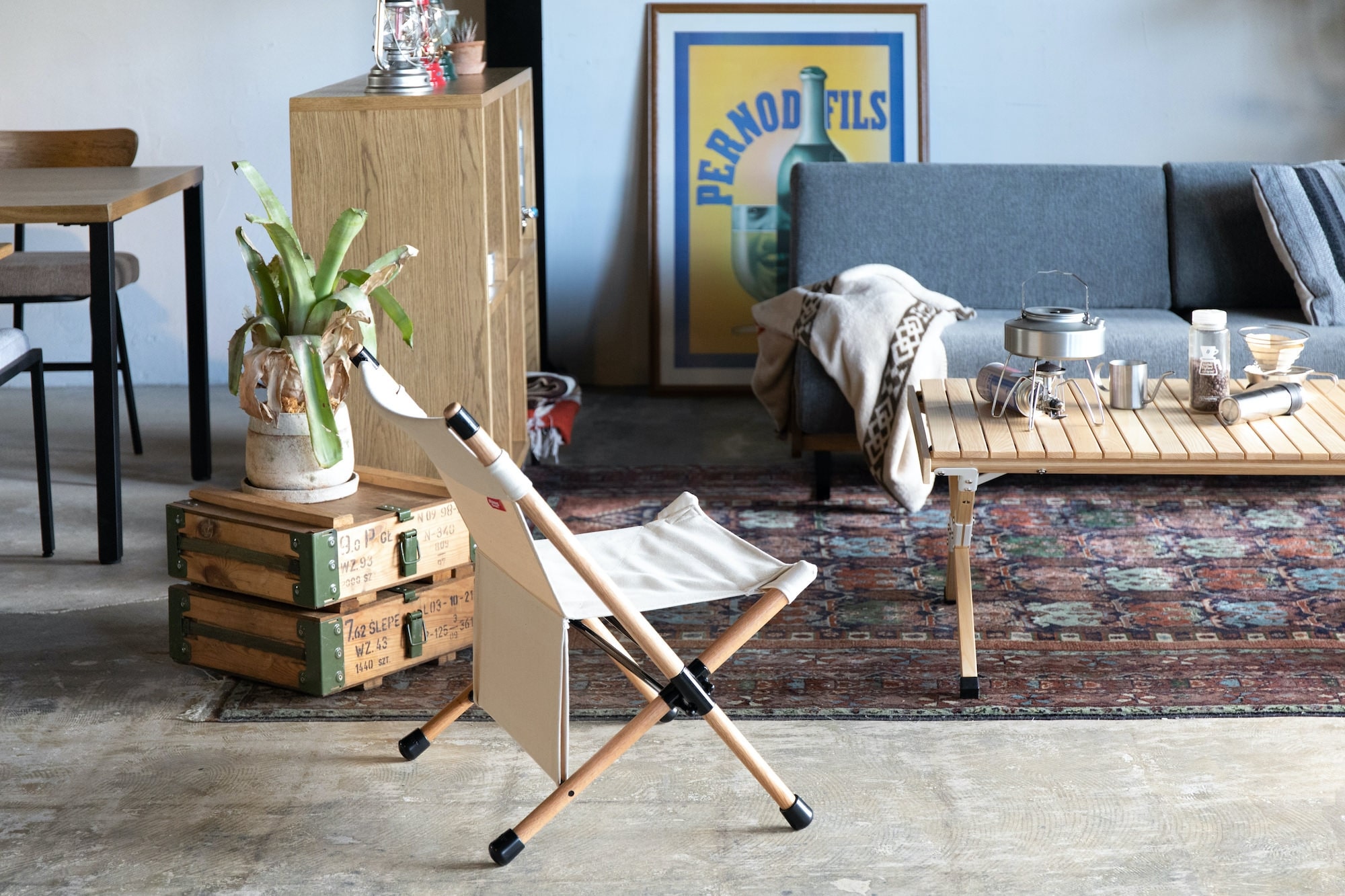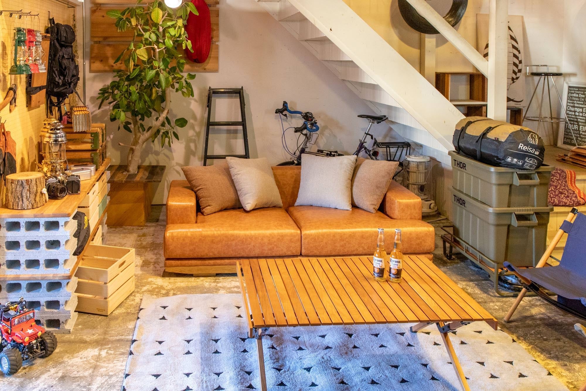 楽しくて利便性も高いキャンプスタイルのリビングコーデをご紹介