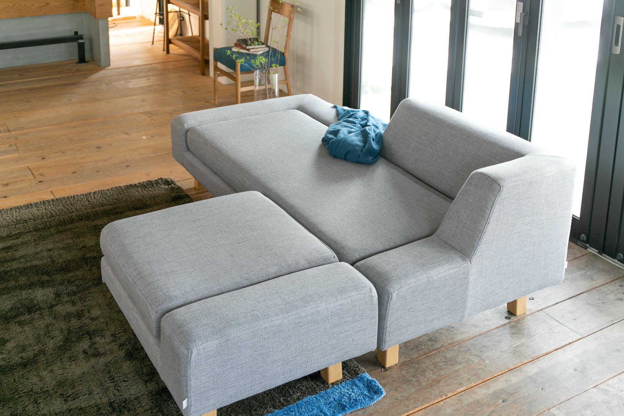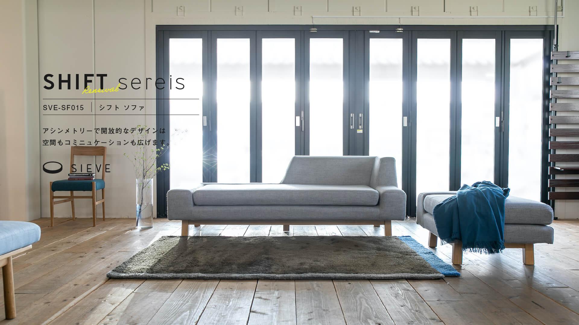 SIEVEのアシンメトリーで個性的なソファのシフトソファが形状そのままに生地をリニューアルしました