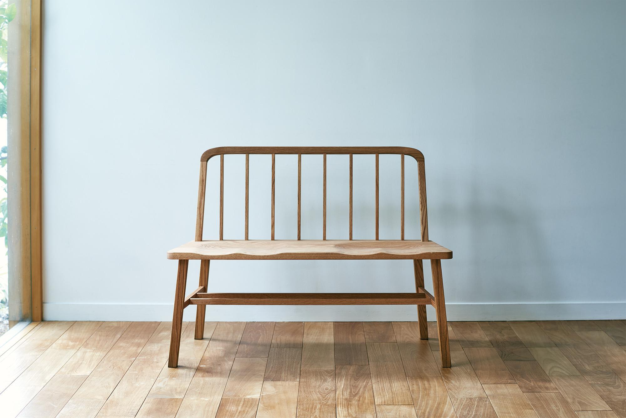 ダイニングハイバックベンチは、コンパクトサイズの背付きの2人掛けチェア。