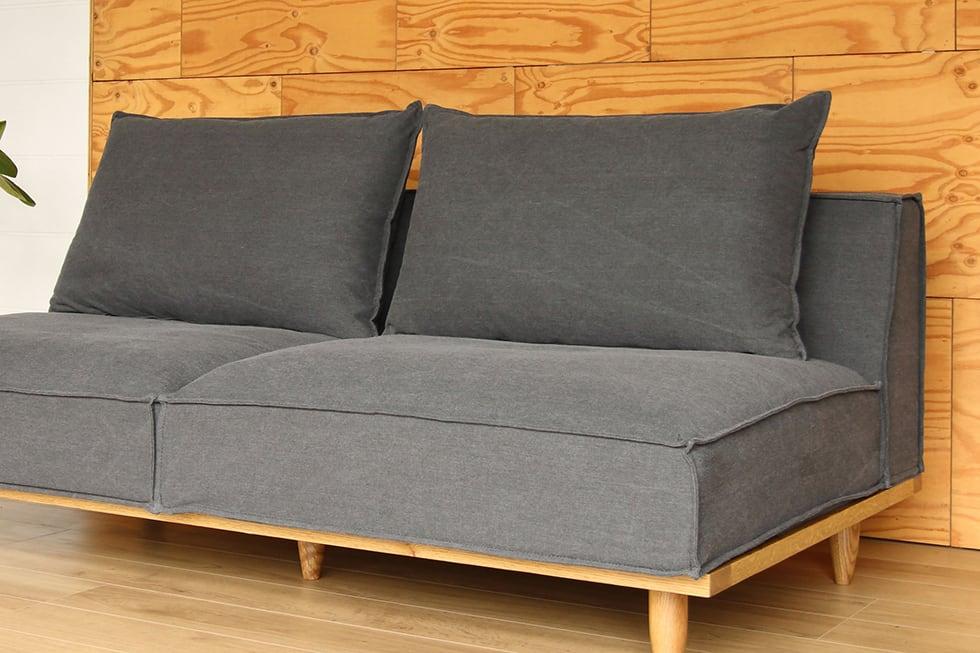 ジェシカソファの生地には、ワンウォッシュ加工を施した帆布生地を採用しました。