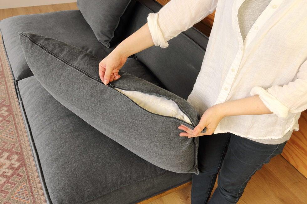 いつも同じ位置に座っていると、他と比べ早く消耗してしまうので、クッションが分かれているタイプのソファは、定期的に左右のクッションを入れ替えることをおすすめしています。