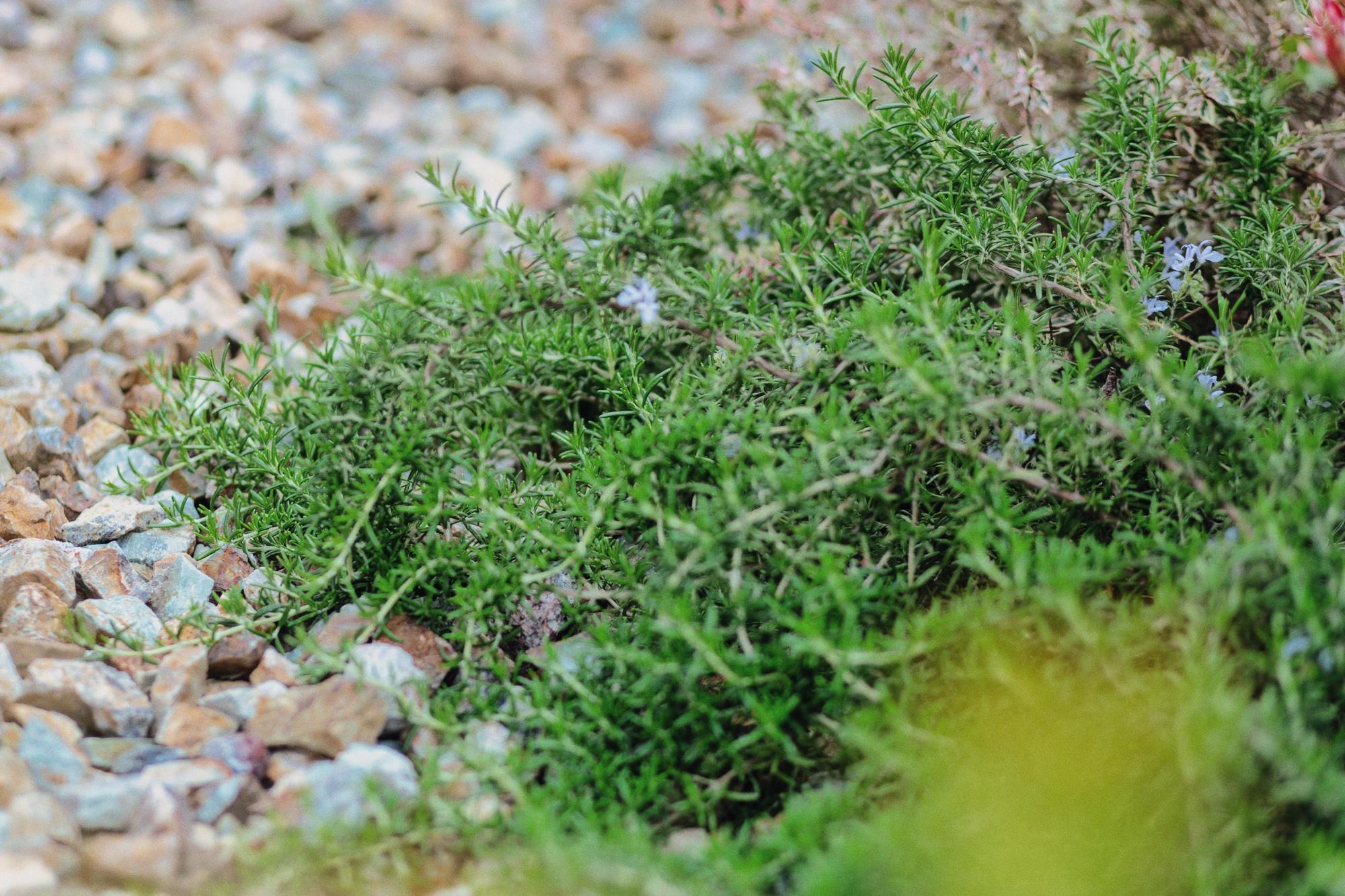 ローズマリー、おおきく分けて、木のように上に伸びる「立性」と、地面を這うように伸びる「匍匐(ほふく)性」、その中間的な「半匍匐性」があり、ほふく性はグランドカバーとしてもおすすめです。