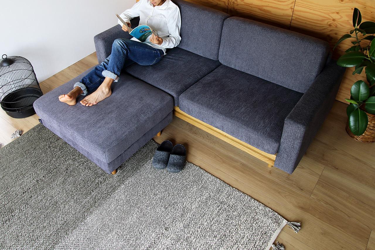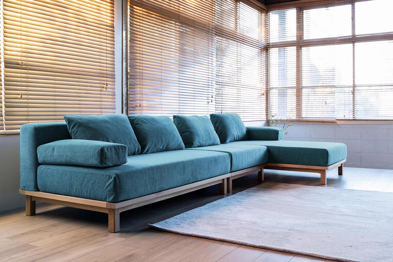 ティナソファは、柔らかな手触りのファブリックと、座面下に上質なウッドをバランス良く組み合わせています。