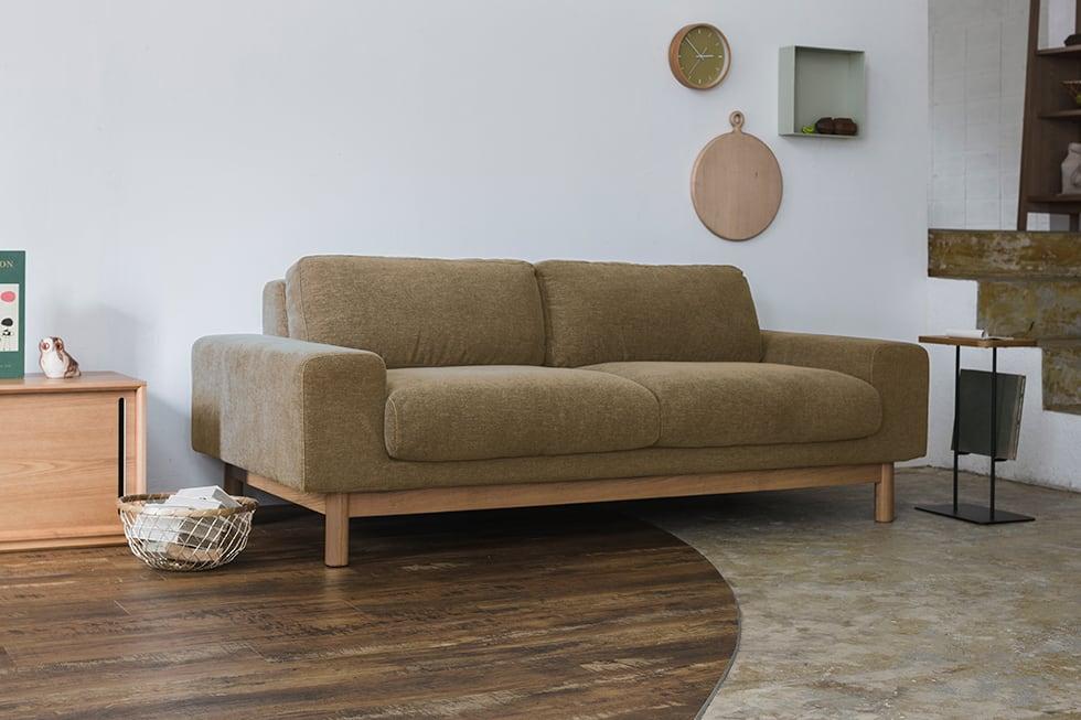 バージュソファシリーズに、木製フレームのカラーがブラウン色のモデルが登場。 SIEVEオンラインショップ限定のLimited商品としてラインナップに追加されます。